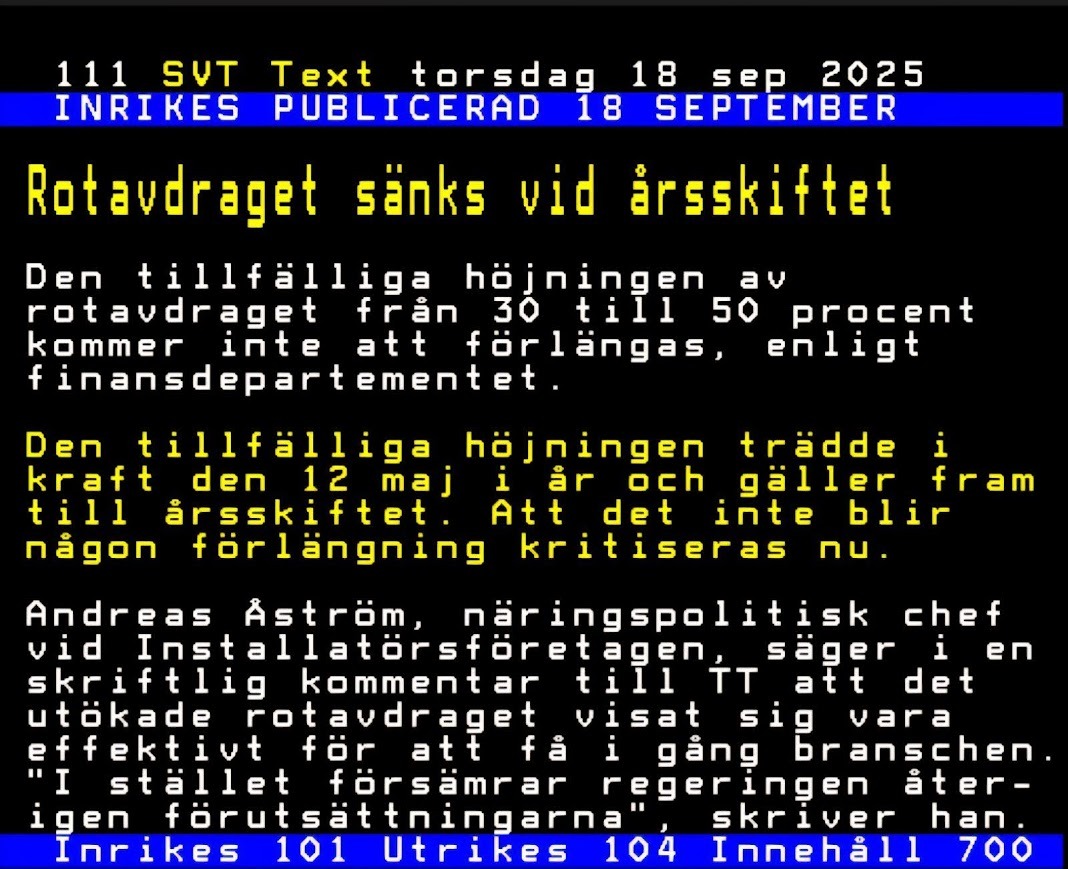 Regeringen har meddelat att det tillfälligt höjda ROT-avdraget inte kommer att förlängas. Från och med årsskiftet minskar avdraget återigen till 30 %, vilket gör att det är hög tid att planera dina renoveringar.